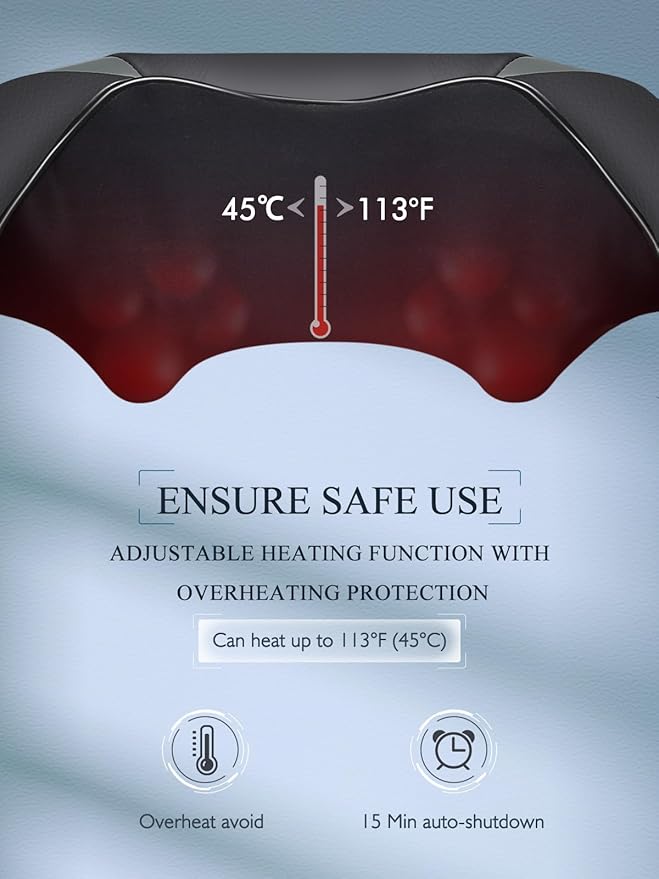 Experience targeted relief and relaxation with this advanced Shiatsu massager, designed to deliver deep tissue kneading across the back, neck, shoulders, waist, legs, calves, and feet. Equipped with soothing heat therapy and ergonomically contoured 3D massage nodes, this electric massager promotes circulation, eases muscle tension, and helps reduce stress.